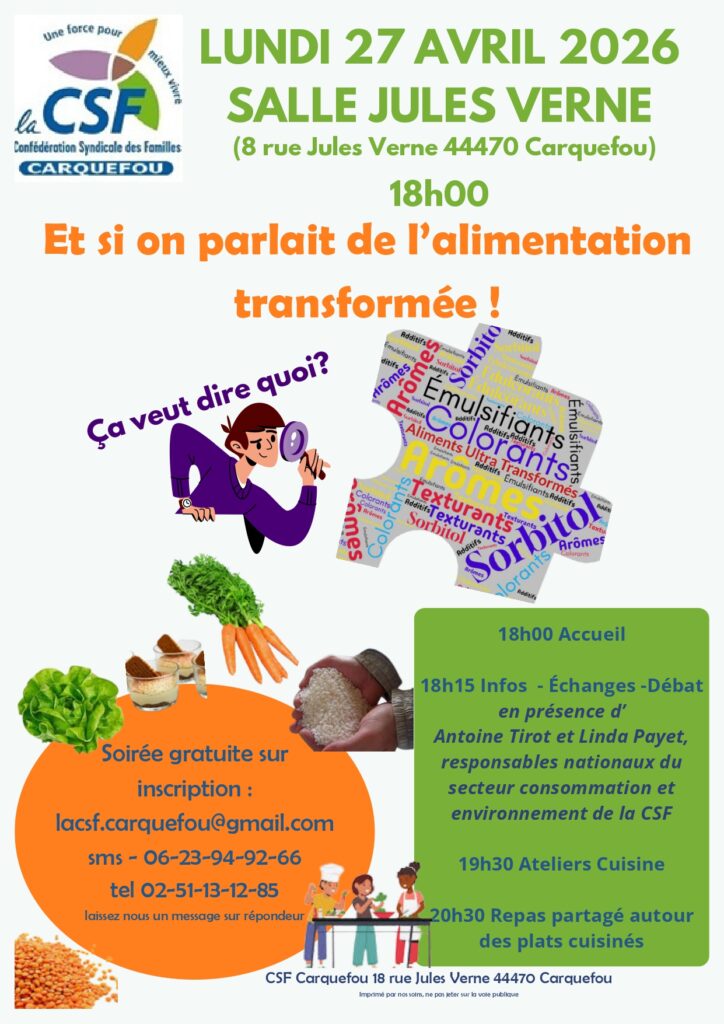 La CSF de Carquefou vous invite à parler des Aliments Ultra Transformés – 27 avril 2026